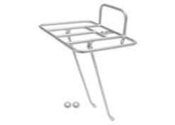 フロントフォークのダボ穴、またはハブボルトにレッグステー(脚パーツ)を取り付けてラックを固定するタイプで、