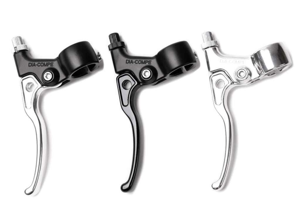 60年以上の伝統を持つ自転車部品のメーカー、DIA-COMPE (ダイアコンペ) の、デザインと手触りのよいブレーキレバーです。